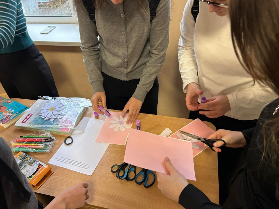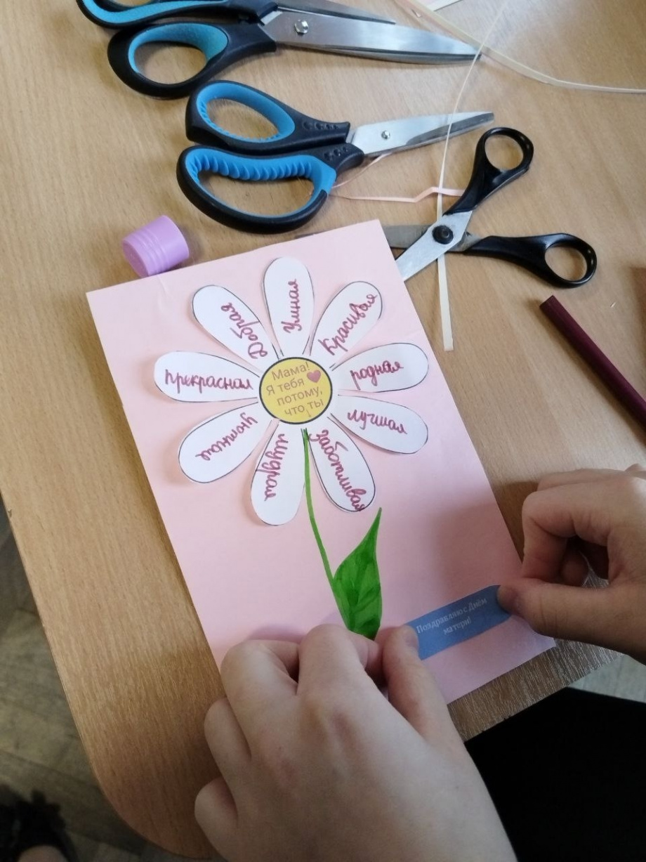 Активисты нашей школы вместе с советником по воспитанию провели мастер-класс "Открытка маме".